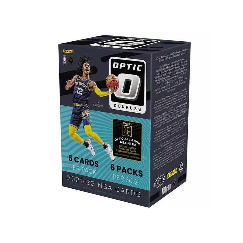 The highly popular Donruss Optic returns and delivers a 200-card base set, consisting of 150 Base and 50 Rated Rookies. Each SKU offers exclusive content for collectors to chase and collect. Each Fanatics Blaster box delivers seven Inserts or Parallels per box on average. Search for Fanatics exclusive Signature Series Green Shock autographs of the top rookies in the 2021 NBA Draft class. Look for randomly inserted autographs of Cade Cunningham, Evan Mobley, Josh Giddey and more! Find a full roster of Retail-only inserts, including Express Lane, Splash!, Air Defense, My House, T-Minus 3 2 1 , and Winner Stays. Chase Fanatics Blaster exclusive insert parallels in Green Shock that are randomly inserted. Fanatics Blaster Exclusive: Base Green Shock, Base Rated Rookies Green Shock, Express Lane Green Shock, Splash! Green Shock, Air Defense Green Shock, My House Green Shock, T-Minus 3 2 1 Green Shock, Winner Stays Green Shock!, and Signature Series Green Shock.