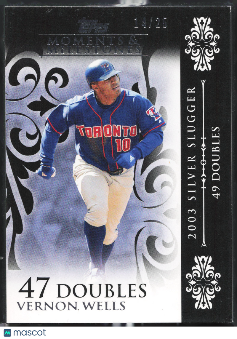 You are purchasing a 2008 Topps Moments & Milestones Vernon Wells #75. You will receive the exact item in the photographs. Thank you for looking. Listed With Mascot.