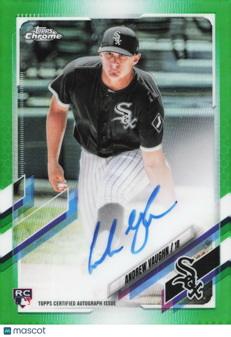 You are purchasing a 2021 Topps Chrome Rookie Autographs Andrew Vaughn #RA-AVA Green Refractor. You will receive the exact item in the photographs. Thank you for looking. Listed With Mascot.