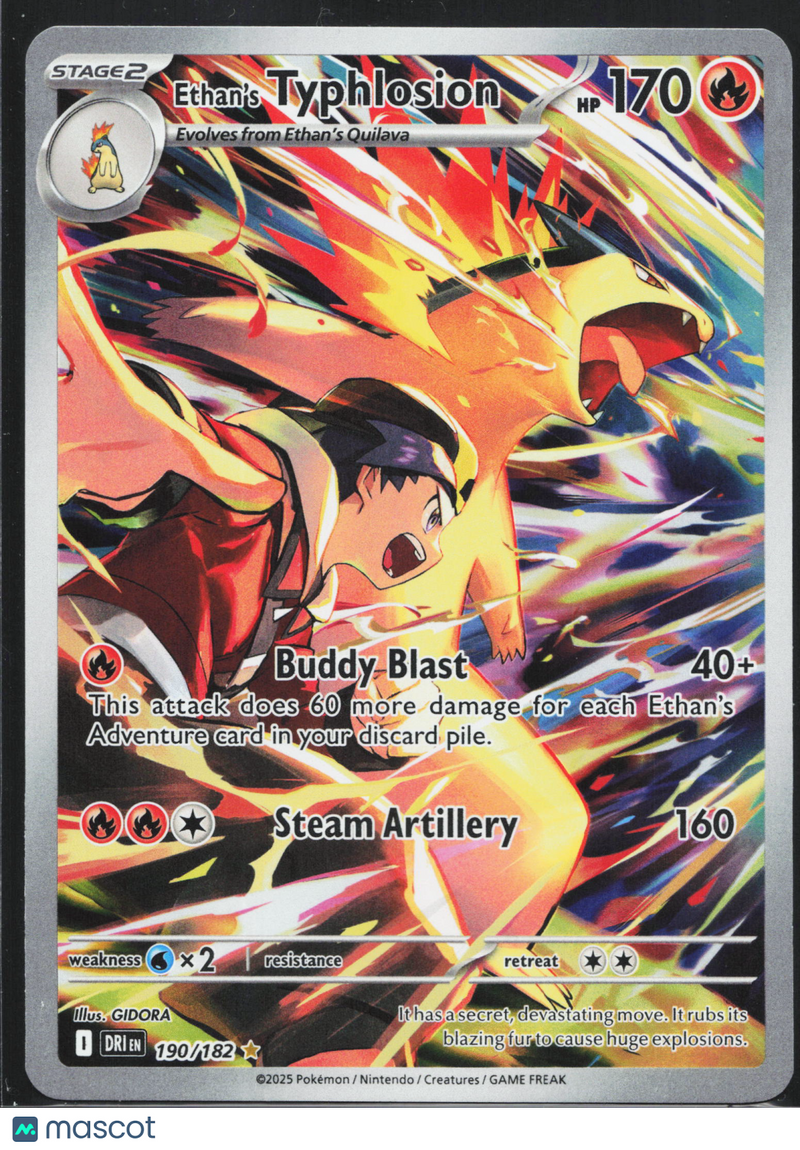 You are purchasing a 2025 Pokemon Scarlet & Violet Destined Rivals Ethan's Typhlosion #190/182. You will receive the exact item in the photographs. Thank you for looking. Listed With Mascot.