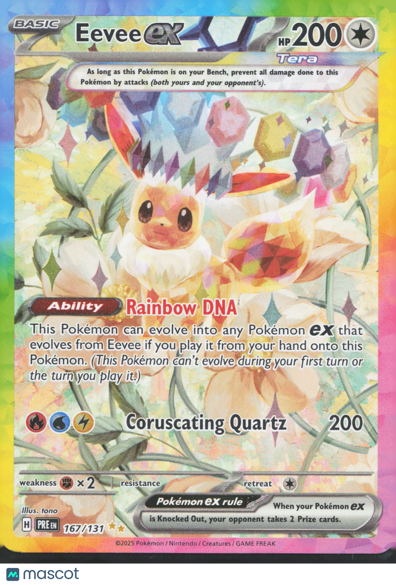 You are purchasing a 2025 Pokemon Scarlet & Violet Prismatic Evolutions Eevee EX #167/131. You will receive the exact item in the photographs. Thank you for looking. Listed With Mascot.