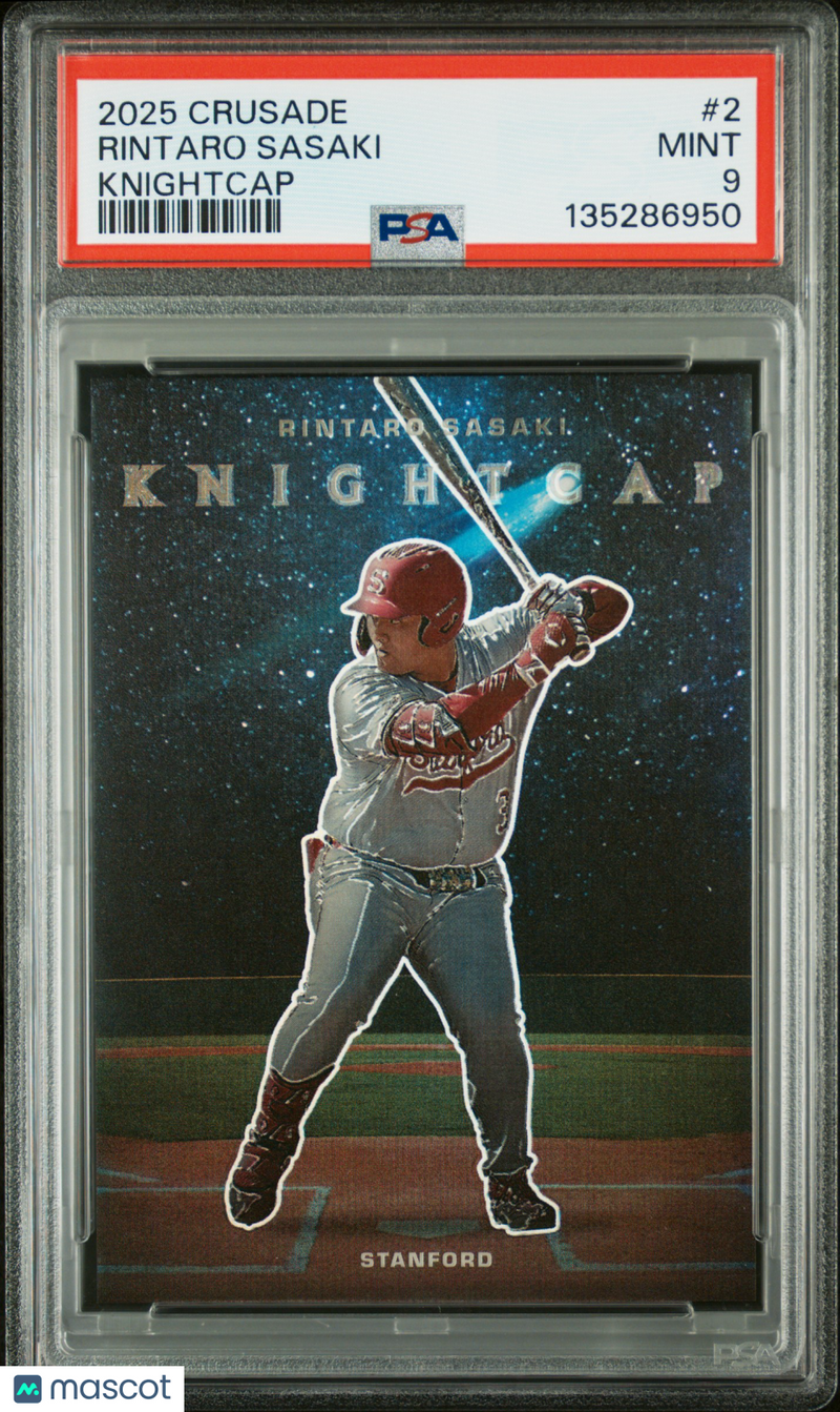 You are purchasing a 2025 Panini Crusade Knightcap Rintaro Sasaki #2 PSA 9. You will receive the exact item in the photographs. Thank you for looking. Listed With Mascot.