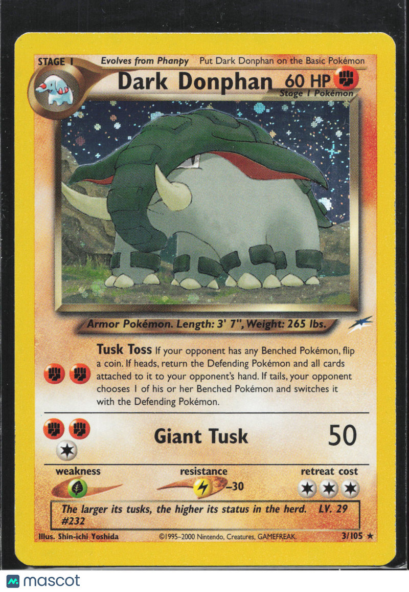 You are purchasing a 2004 EX Team Rocket Returns Dark Donphan #3/105. You will receive the exact item in the photographs. Thank you for looking. Listed With Mascot.