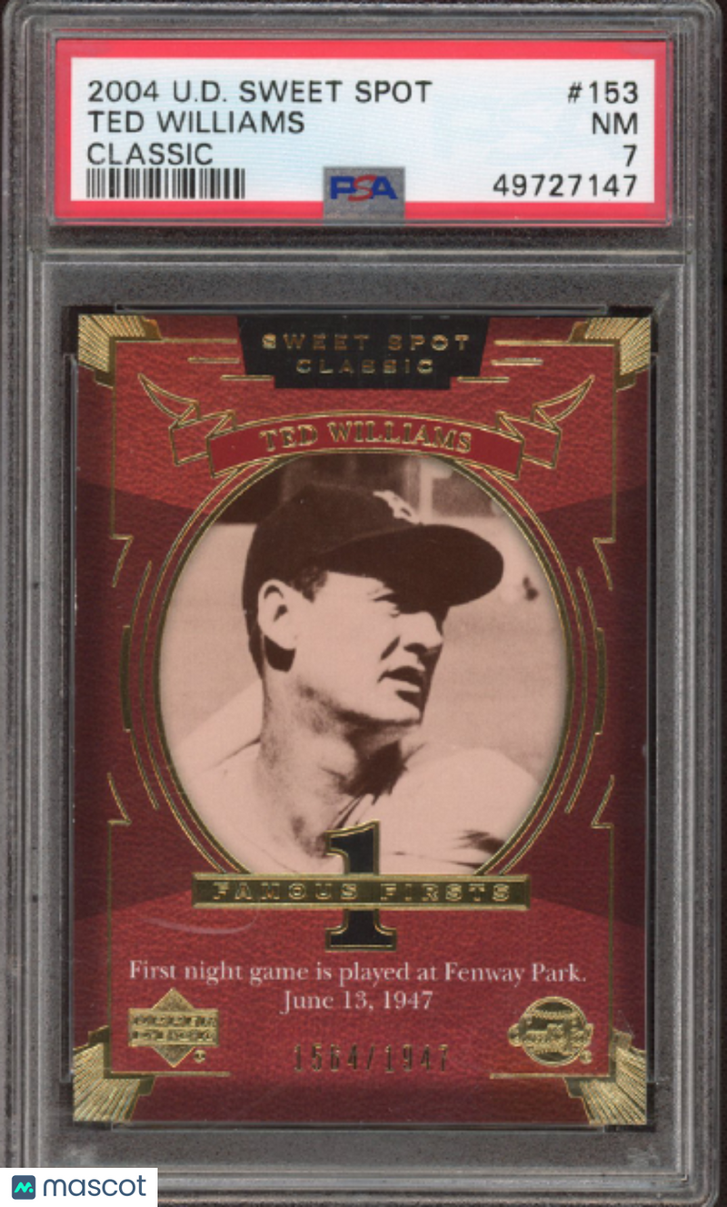 You are purchasing a 2004 Upper Deck Sweet Spot Classic Ted Williams #153 PSA 7. You will receive the exact item in the photographs. Thank you for looking. Listed With Mascot.