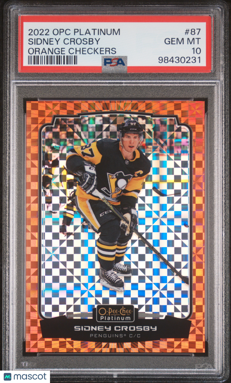 You are purchasing a 2022 O-Pee-Chee Platinum Sidney Crosby #87 Orange Checkers PSA 10. You will receive the exact item in the photographs. Thank you for looking. Listed With Mascot.