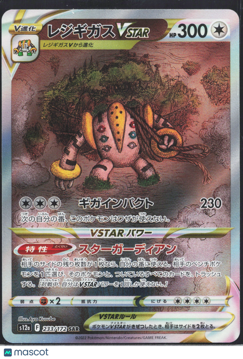 You are purchasing a 2022 VSTAR Universe Regigigas VSTAR #233/172 SAR Japanese SAR. You will receive the exact item in the photographs. Thank you for looking. Listed With Mascot.