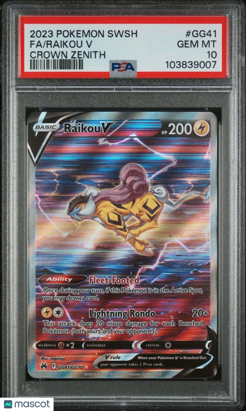 You are purchasing a 2023 Pokemon Sword And Shield Crown Zenith Raikou V #GG41 Fa Crown Zenith PSA 10. You will receive the exact item in the photographs. Thank you for looking. Listed With Mascot.