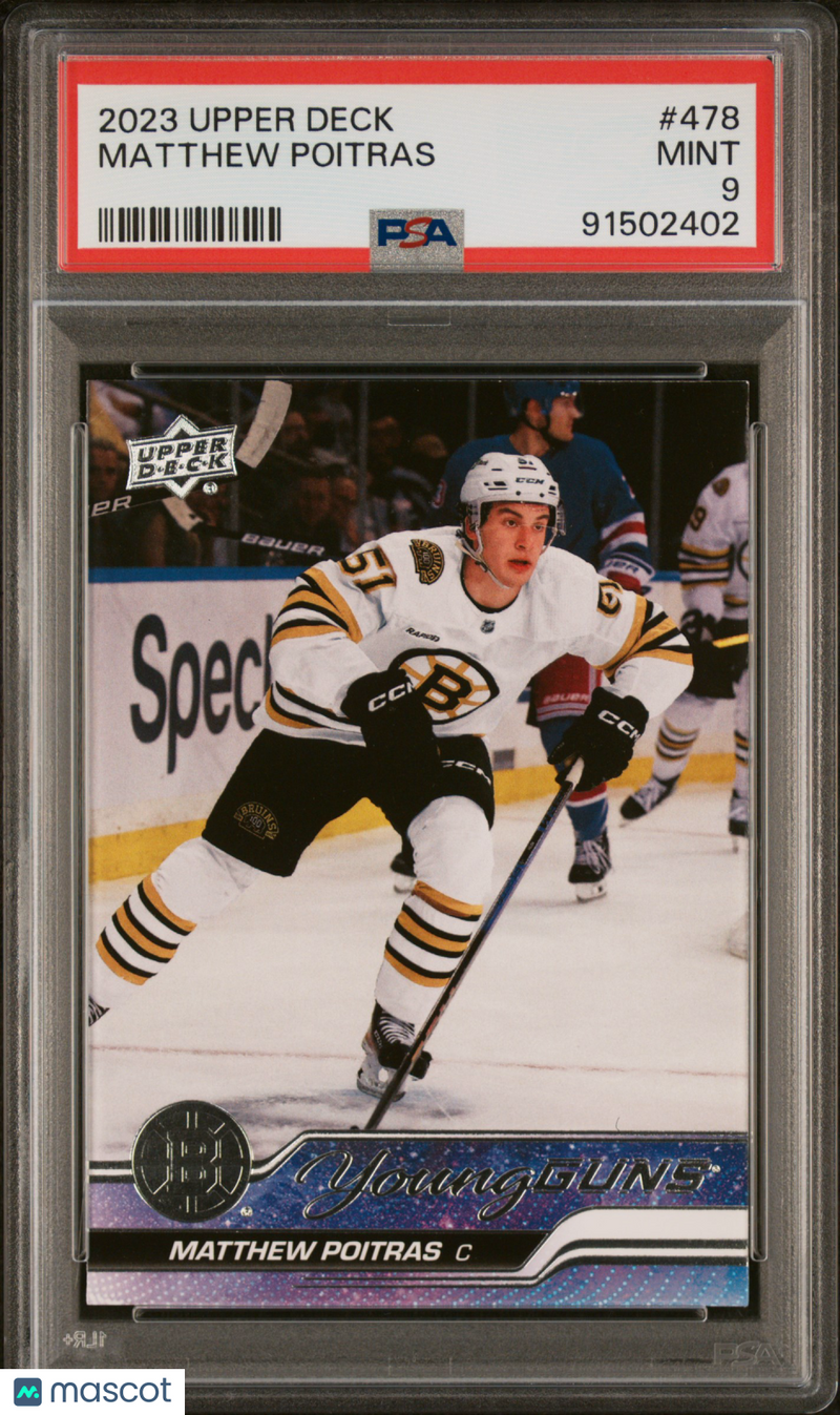 You are purchasing a 2023 Upper Deck Matthew Poitras #478 PSA 9. You will receive the exact item in the photographs. Thank you for looking. Listed With Mascot.
