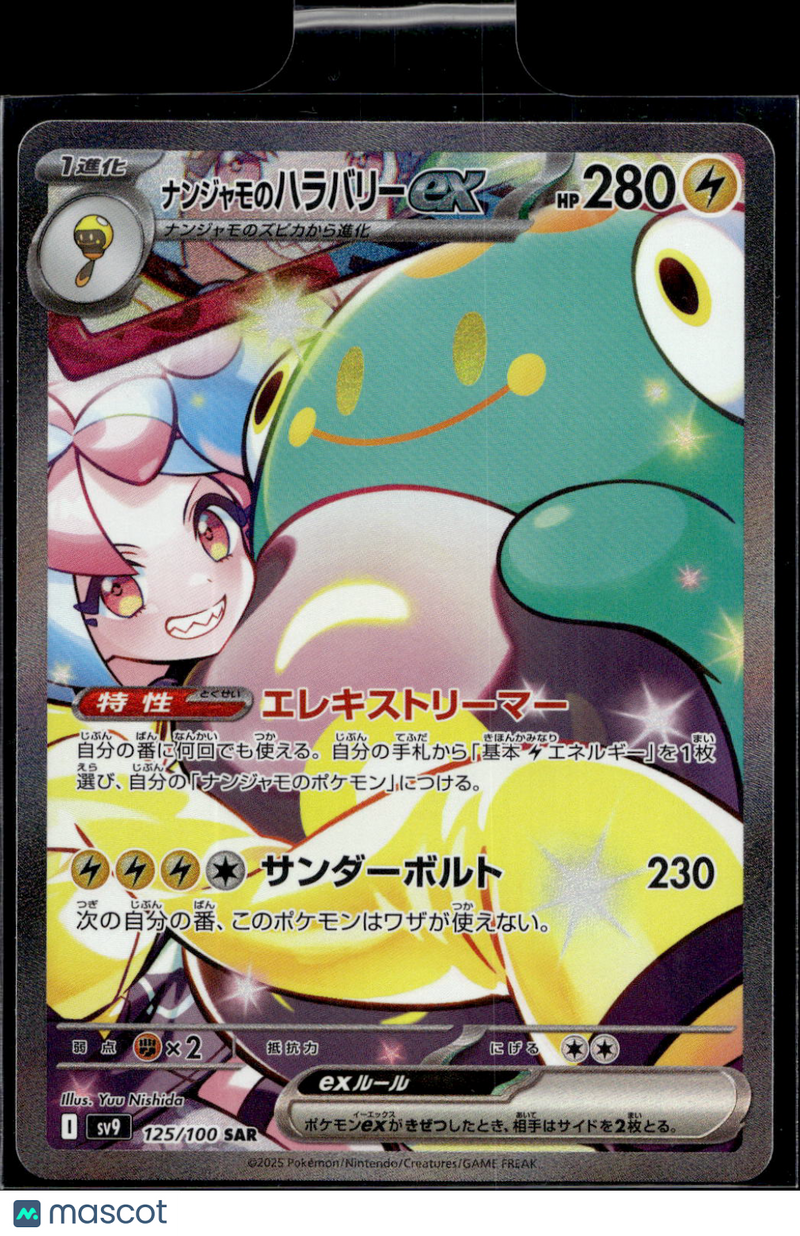 2025 Sv9: Battle Partners Bellibolt EX #125/100 SAR Japanese SAR Don’t miss your chance to add the highly sought-after Bellibolt EX Special Illustration Rare from the 2025 Pokemon Scarlet & Violet White Flare, Sv9: Battle Partners set to your collection! This Japanese SAR card (#125/100) features a stunning holo finish and is in near mint or better condition, making it a standout piece for any serious Pokemon card enthusiast. Manufactured by Nintendo and loaded with collector appeal, this Bellibolt EX SAR is a must-have for fans of exclusive and rare Pokemon cards. Secure this incredible card today and elevate your collection with one of the most anticipated releases of 2025! Rarity: Special Illustration Rare Set: 2025 Pokemon Scarlet & Violet White Flare, Sv9: Battle Partners Game: Pokemon Language: Japanese Character: Bellibolt EX Card Condition: Near Mint or Better Manufacturer: Nintendo Features: SAR Year Manufactured: 2025 Card Number: 125/100 SAR Finish: Holo Listed With Mascot.